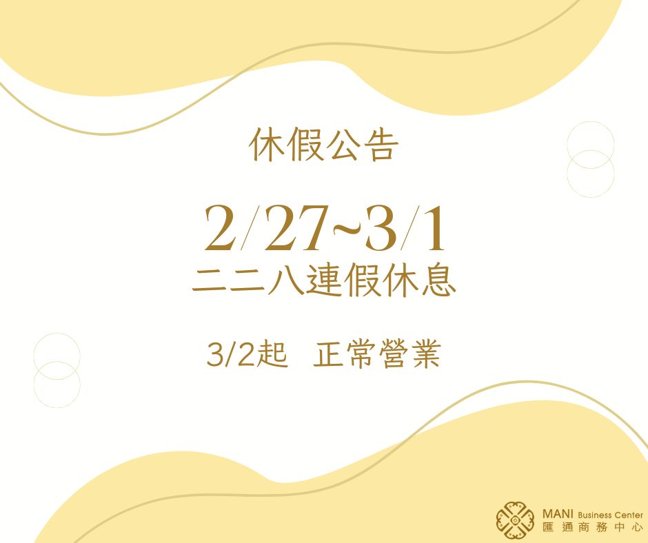 2026/02/27(五)~2026/03/01(日) 228連續假期